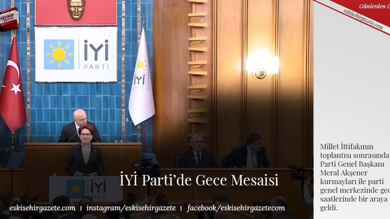 Millet İttifakının toplantısı sonrasında İYİ Parti Genel Başkanı Meral Akşener kurmayları ile parti genel merkezinde gece saatlerinde bir araya geldi.