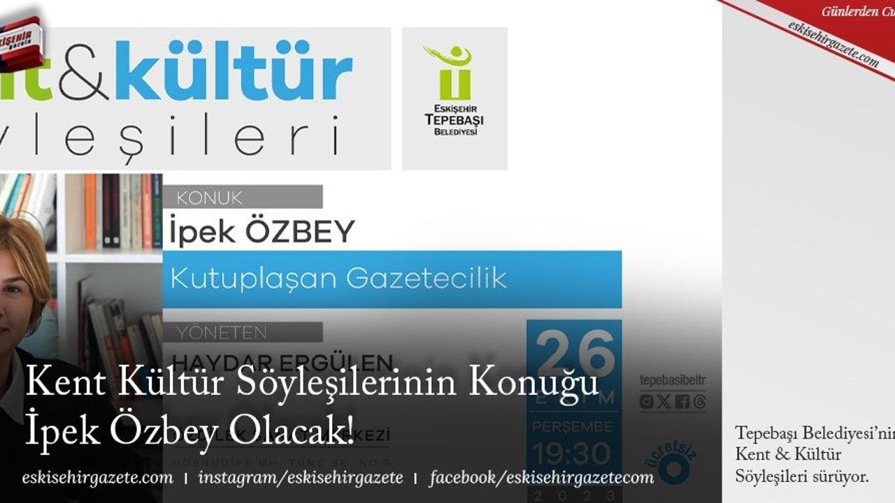 Şair Haydar Ergülen'in koordinatörlüğünde gerçekleşen söyleşilerin bu ayki konuğu Gazeteci Yazar İpek Özbey olacak. Tepebaşı Belediyesi'nin beğeniyle takip edilen ve şehrin kültür geleneği haline gelen Kent & Kültür Söyleşileri, birbirinden önemli isimleri Eskişehirlilerle bir araya getirmeye devam ediyor. Şair Haydar Ergülen'in koordinatörlüğünde gerçekleşecek Kent & Kültür Söyleşilerinin bu ayki konuğu ise Gazeteci Yazar İpek Özbey olacak. Özbey, Tepebaşı Belediyesi Özdilek Sanat Merkezi'nde 26 Ekim Perşembe günü saat 19.30'da; 'Kutuplaşan Gazetecilik' konulu söyleşiye katılacak.