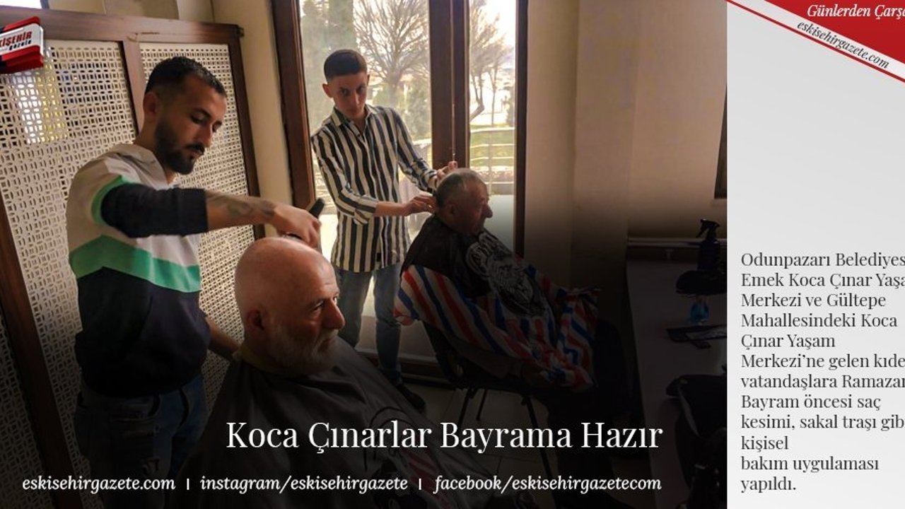 Odunpazarı Belediyesi, Emek Koca Çınar Yaşam Merkezi ve Gültepe Mahallesindeki Koca Çınar Yaşam Merkezi'ne gelen kıdemli vatandaşlara Ramazan Bayram öncesi saç kesimi, sakal traşı gibi kişisel bakım uygulaması yapıldı.