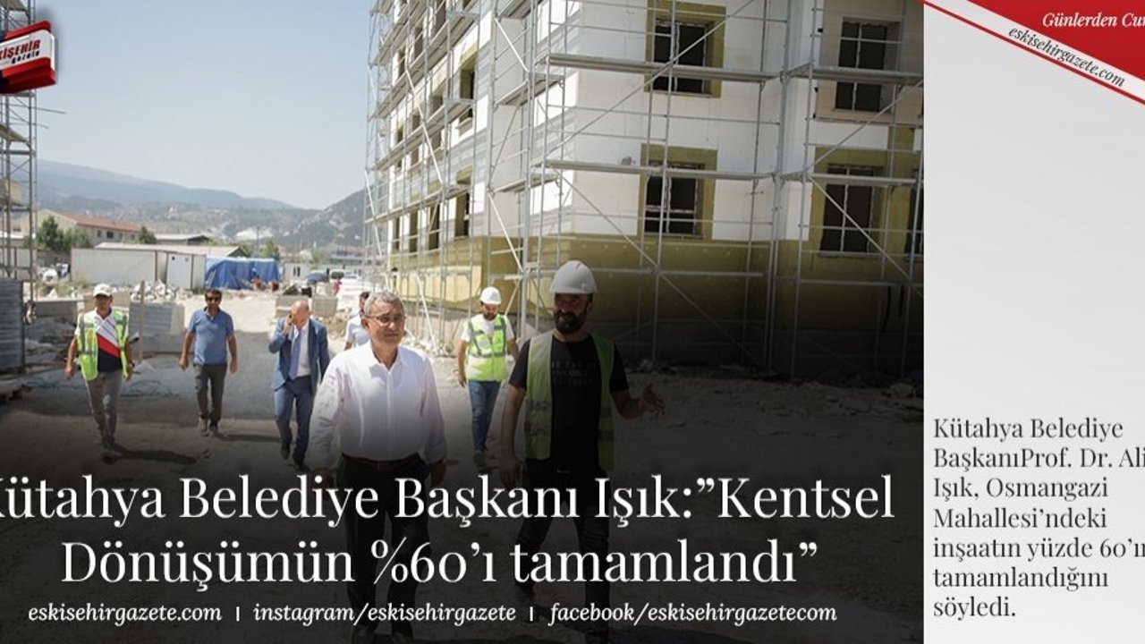 Kütahya Belediye BaşkanıProf. Dr. Alim Işık, Osmangazi Mahallesi'ndeki inşaatın yüzde 60'ının tamamlandığını söyledi.