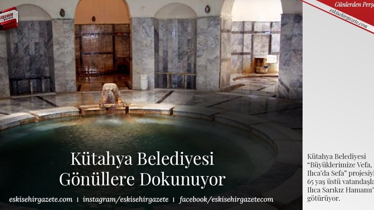 'Büyüklerimize vefa ılıca'da sefa projemizle gönüllere dokunuyoruz.' sözleriyle Kütahya Belediyesi bir projeye daha imza atıyor. Sosyal Belediyecilik anlayışıyla geliştirdikleri projeleriyle, 65 yaş ve üstü vatandaşları Ilıca Sarıkız Hamamımı'na götürüyor.