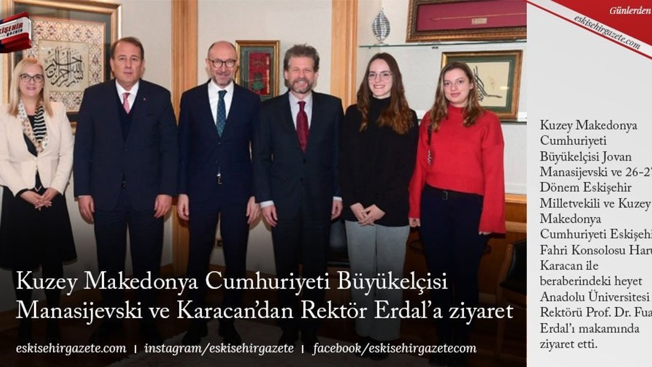 Kuzey Makedonya Cumhuriyeti Büyükelçisi Jovan Manasijevski ve 26-27. Dönem Eskişehir Milletvekili ve Kuzey Makedonya Cumhuriyeti Eskişehir Fahri Konsolosu Harun Karacan ile beraberindeki heyet Anadolu Üniversitesi Rektörü Prof. Dr. Fuat Erdal'ı makamında ziyaret etti.