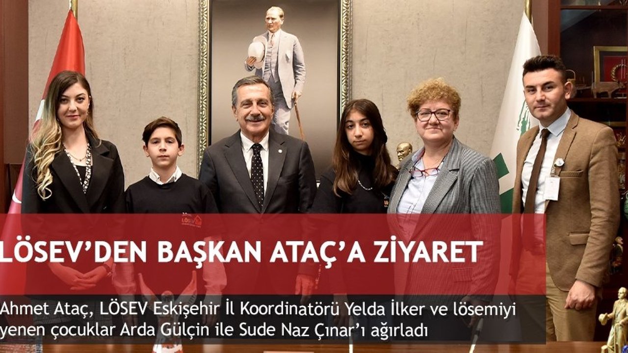 Başkan Ataç, LÖSEV Eskişehir İl Koordinatörü Yelda İlker ve lösemiyi yenen çocuklar Arda Gülçin ile Sude Naz Çınar'ı makamında ağırladı. Buluşmada İlker, Başkan Ataç'a LÖSEV'in sürdürdüğü faaliyetlere ilişkin bilgiler verdi. Başkan Ataç da LÖSEV'in üstlendiği görevler ve faaliyet alanı ile birlikte çok önemli bir kuruluş olduğunu belirterek, çalışmalarında başarılar diledi. Başkan Ataç ayrıca lösemi ile mücadele eden tüm çocukların da bir an önce sağlığına kavuşmasını temenni etti.