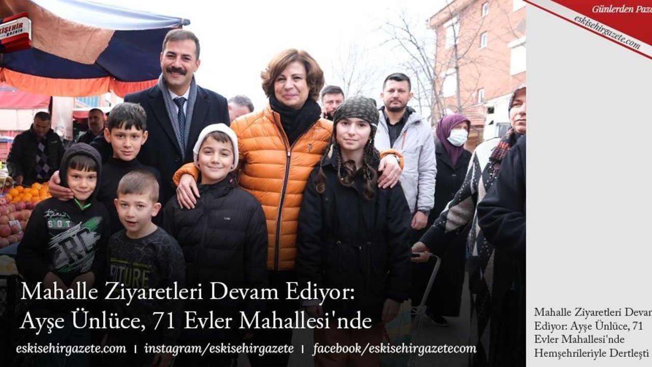 Eskişehir Büyükşehir Belediye Başkan Adayı Ayşe Ünlüce, 71 Evler Mahallesi'ni ziyaret ederek pazar alışverişi yapan hemşehrileriyle buluştu. Ziyaret sırasında, yüksek enflasyonun neden olduğu ekonomik zorlukları ele alan Ünlüce, mahalle sakinleriyle dertleşti.