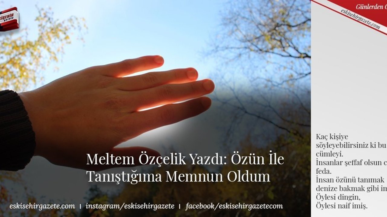 Meltem Özçelik'in Özün İle Tanıştığıma Memnun Oldum yazısı için: