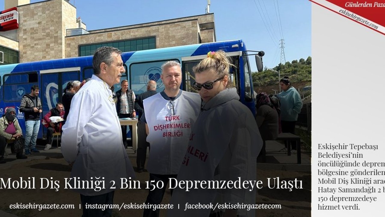 2 Mart tarihinden bu yana Tepebaşı Belediyesi öncülüğünde Eskişehir Büyükşehir Belediyesi, Türk Dişhekimleri Birliği, Eskişehir Diş Hekimleri Odası ve Diş Malzemeleri Sanayicileri ve İşadamları Derneği (DİŞSİAD) iş birliğinde hazırlanan Mobil Diş Kliniği aracı, diş tedavisi için gerekli olan ekipmanlar ile birlikte Hatay'ın Samandağ ilçesinde depremzede vatandaşlara hizmet veriyor. Tepebaşı Belediye Başkanı Dt. Ahmet Ataç da aynı zamanda bir diş hekimi olarak depremzedeleri yalnız bırakmıyor. Belirli periyodlar ile bölgeye giderek 2 bin 150 vatandaşın yararlandığı Mobil Diş Kliniği'nde depremzede vatandaşları muayene eden Başkan Ataç, Hataylılara Eskişehirlilerin sevgi ve selamlarını da iletiyor.