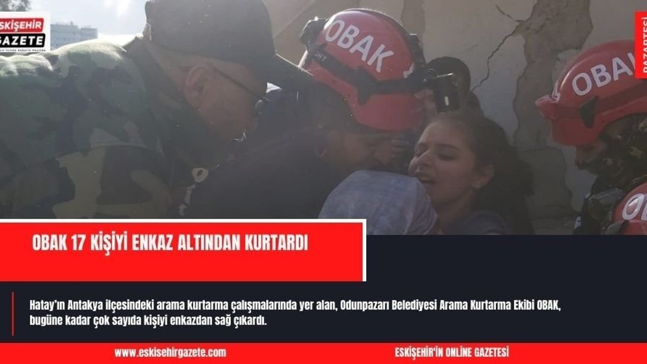 Kahramanmaraş'ta 7.7 ve 7.6 büyüklüğündeki deprem 10 şehirde büyük yıkıma yol açarken, Odunpazarı Belediyesi Arama Kurtarma Ekibi OBAK, bölgedeki arama kurtarma çalışmalarını sürdürüyor. Hatay'ın Antakya ilçesindeki arama kurtarma çalışmalarında yer alan OBAK, bugüne kadar çok sayıda kişiyi enkazdan sağ çıkardı.