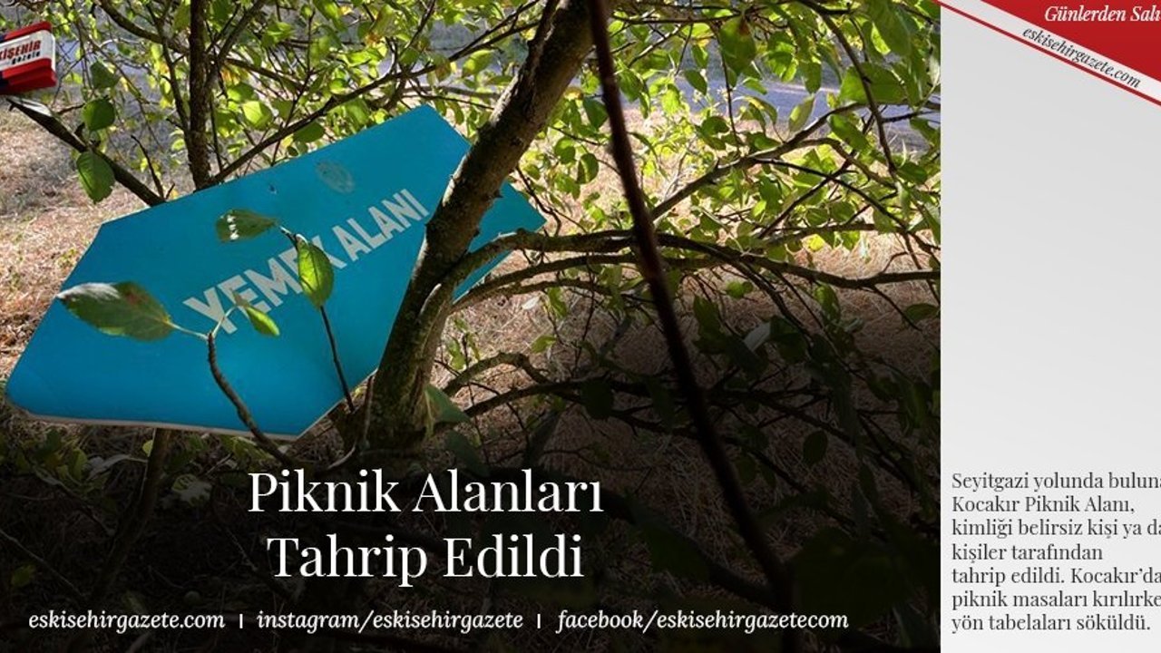 Seyitgazi yolunda bulunan Odunpazarı Belediyesi Kocakır Piknik Alanı, kimliği belirsiz kişi ya da kişiler tarafından tahrip edildi. Kocakır'da piknik masaları kırılırken, yön tabelaları söküldü. Çöp konteynerlerine atılmayan çöpler nedeniyle piknik alanı kirletildi.