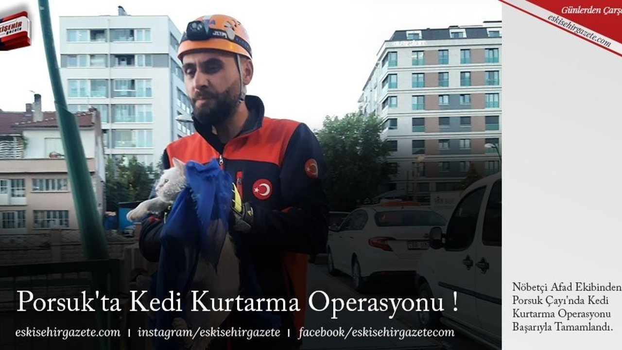 112 Acil Çağrı Merkezi üzerinden Afad'a ulaşan ihbarda Odunpazarı İlçesinde Kurtuluş Mahallesi, Vatan Caddesi, Porsuk Çayı Köprüsünün altında mahsur kalan kedi, ihbar üzerine ivedilikle AFAD Nöbetçi Ekibi (3 Personel) 18.05 itibari ile hareket etmiştir. Olay yerinde AFAD koordinasyonunda yapılan kurtarma çalışmaları neticesinde mahsur kalan kedi AFAD Nöbetçi ekipleri (3 Personel) tarafından sağ olarak porsuk köprünün altından çıkarılarak sahibine teslim edilmiştir.