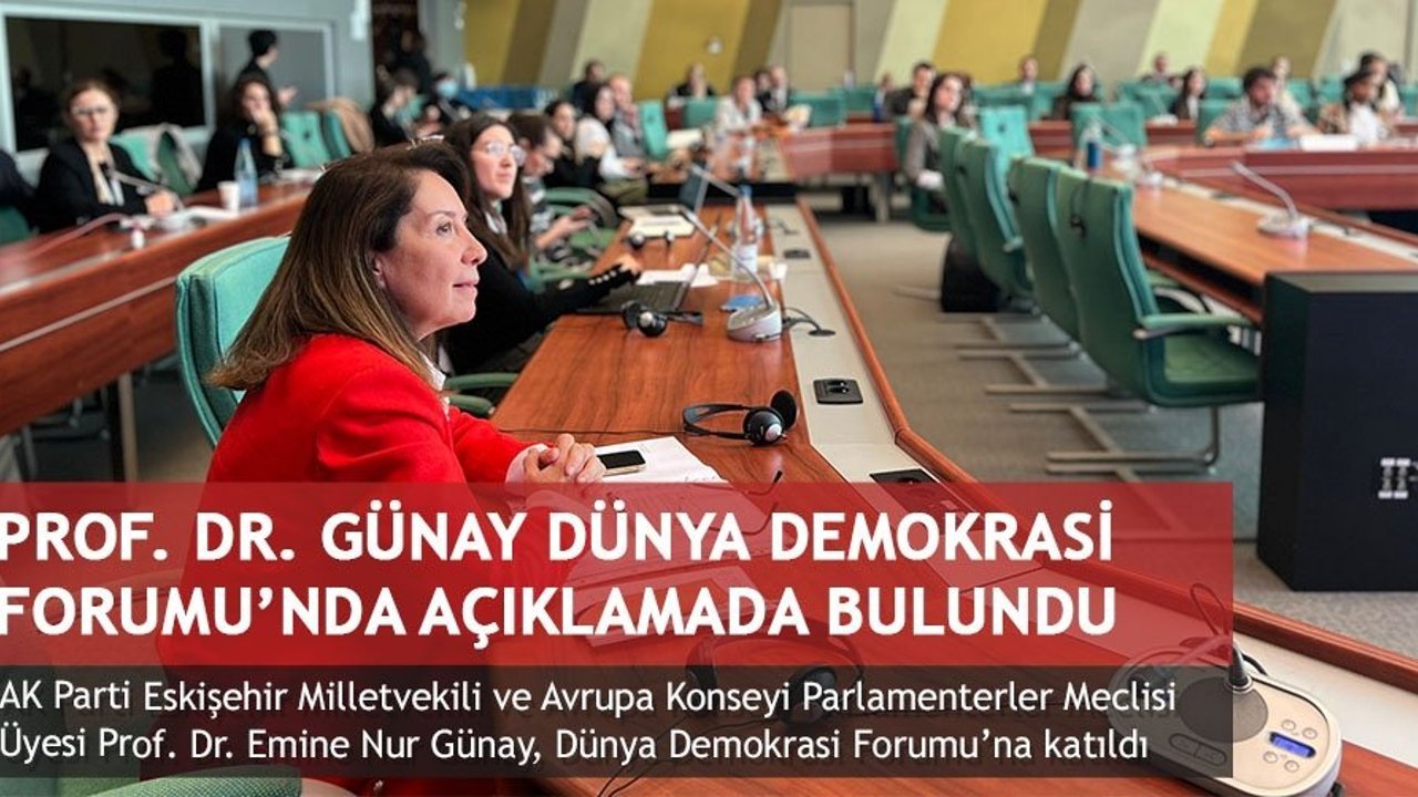 Bu yıl ''Demokrasi, yeni umut mu?'' temasıyla düzenlenen foruma 195 ülkeden temsilciler, parlamenterler, sivil toplum kuruluşları ve girişimciler katılıyor. Prof. Dr. Günay foruma katılımı ile ilgili 'Dünya Demokrasi Forumu toplantıları için Strazburgdayız. Bu yıl onuncusu yapılıyor ve 195 ülkeden yönetişim paydaşları yani sivil toplum kuruluşları, parlamenterler, özel sektör temsilcileri, kamu kurumları temsilcileri ve girişimciler katılıyor. Her yıl demokrasi ekseninde bir konu ele alınıyor. 195 Ülkeden katılımcılar var o yüzden çok boyutlu tartışmalar gerçekleşiyor. Örneğin geçen sene sürdürülebilir çevre ve demokrasi konusunda bir tema belirlenmişti. Demokrasi çevreyi koruyabilir mi başlığı altında çok değerli çalışmalar yapıldı. Bu yıl da ''demokrasi yeni umut mu?'' şeklinde bir başlık altında demokrasinin çeşitli tanımları ve yaklaşımlarını tartışıyoruz. 2000 yıldan fazla tarihi olan bir demokrasi kavramını bu yüzyılda ve bugünlerde konuşmak ne kadar anlamlı onu da bir yandan değerlendiriyoruz.'' Şeklinde açıklamada bulundu.