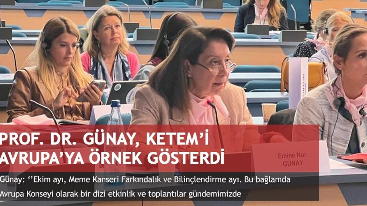 Prof. Dr. Günay konu ile ilgili, ''Ekim ayı, Meme Kanseri Farkındalık ve Bilinçlendirme ayı. Bu bağlamda Avrupa Konseyi olarak bir dizi etkinlik ve toplantılar gündemimizde. Strazburg'a gelmeden Eskişehir Valiliği tarafından düzenlenen bir dizi etkinliklere katıldım. Avrupa Konseyi kadın milletvekilleri grubu olarak göğüs kanseri hakkında bir seminer düzenledik. Bu toplantıda KETEM ve gezici KEYEM uygulamasını 'başarı öyküsü' olarak paylaştım. KETEM yani Kanser Erken Teşhis, Tarama ve Eğitim Merkezleri, kanserde erken teşhis ve taramanın önemi konusunda toplum farkındalığını eğitim yoluyla artırmak, erken yakalanabilir kanserlerde toplum tabanlı tarama faaliyetlerini yürütmek, tüm bu faaliyetler sonucunda da önlenebilir ve erken yakalanabilir kanserlerin görülme sıklığını ve ölüm oranlarını azaltmak amacıyla faaliyet gösteren bir kurumumuz. Sağlık Bakanlarımıza ve fedakarca bu hizmeti veren hekimlerimize ve sağlık çalışanlarımıza minnettarız, gönülden teşekkür ediyoruz.'