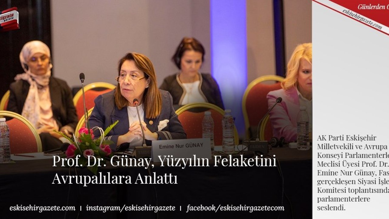 AK Parti Eskişehir Milletvekili ve Avrupa Konseyi Parlamenterler Meclisi Üyesi Prof. Dr. Emine Nur Günay, Fas'ta gerçekleşen Siyasi İşler Komitesi toplantısında parlamenterlere seslendi. Ülkemizde yaşanan deprem felaketi ile alakalı güncel bilgileri Avrupalı meslektaşları ile paylaşan Günay, diğer ülkelere Türkiye adına uluslararası destek için teşekkür etti. Prof. Dr. Günay, ''6 Şubat günü sabah saat 4 sularında Türkiye'de en büyüğü 7.8 şiddetinde olmak üzere birden çok deprem meydana gelmiştir. Bu, yer bilimi alanda çalışan tüm ulusal ve uluslararası kuruluşların eşine az rastlanan çok anormal bir durum olarak nitelendirdiği bir hadisedir. Birleşmiş Milletler ve Dünya Sağlık Örgütü bu depremlerin, yüzyılın felaketi olduğunu açıklamıştır.''