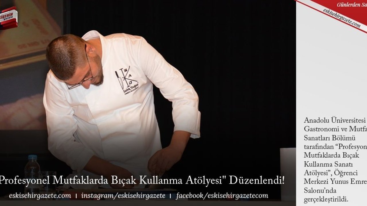 Anadolu Üniversitesi Gastronomi ve Mutfak Sanatları Bölümü tarafından 'Profesyonel Mutfaklarda Bıçak Kullanma Sanatı Atölyesi', Öğrenci Merkezi Yunus Emre Salonu'nda gerçekleştirildi.