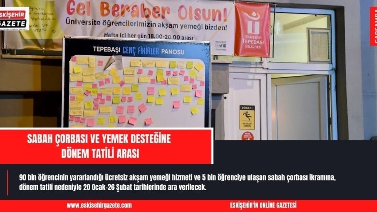 Tepebaşı Belediyesi'nin, kentteki üniversiteli geçler için uyguladığı ve 90 bin öğrencinin yararlandığı ücretsiz akşam yemeği hizmeti ve 5 bin öğrenciye ulaşan sabah çorbası ikramına, dönem tatili nedeniyle 20 Ocak-26 Şubat tarihlerinde ara verilecek.