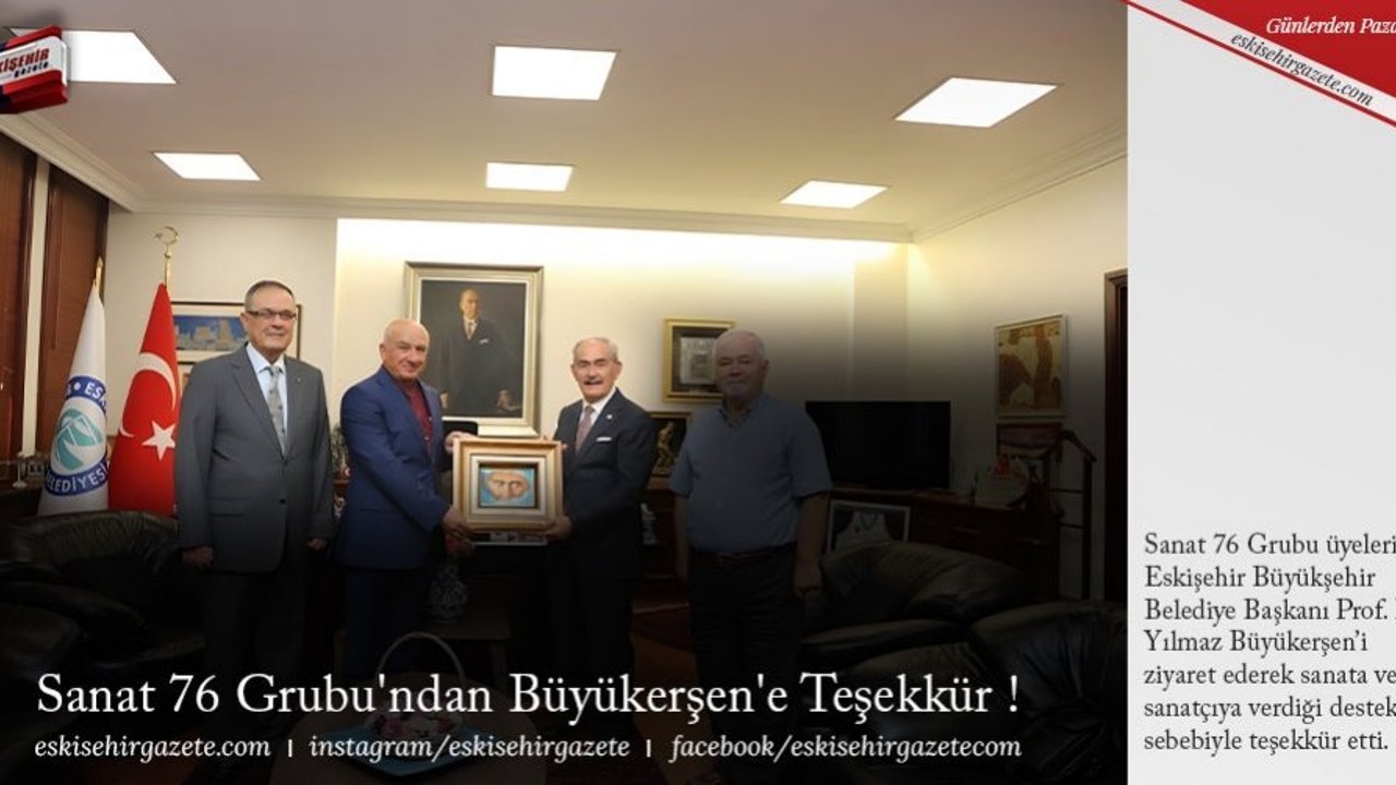 Sanat 76 Grubu üyeleri, Eskişehir Büyükşehir Belediye Başkanı Prof. Dr. Yılmaz Büyükerşen'i ziyaret ederek sanata ve sanatçıya verdiği destek sebebiyle teşekkür etti.