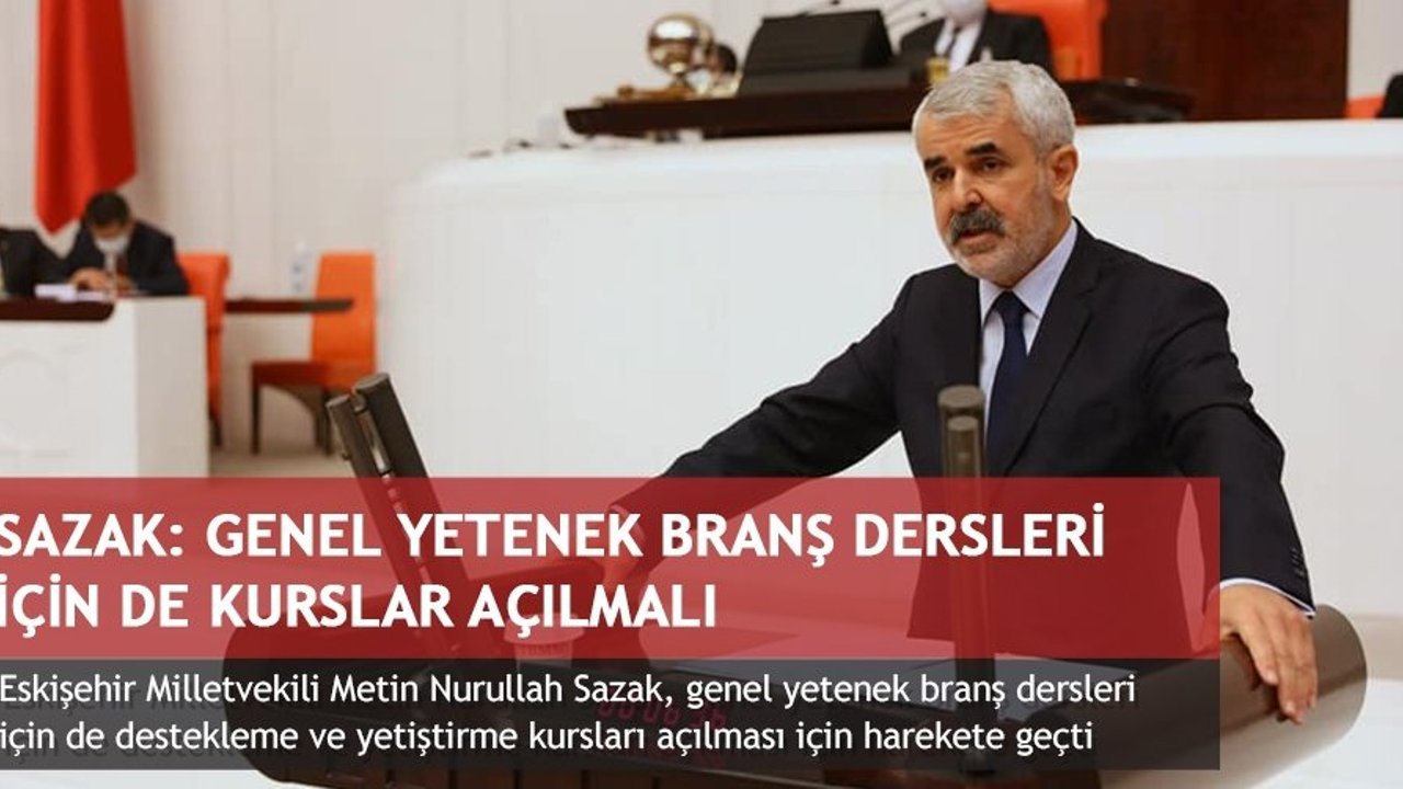 TBMM Başkanlığına sunduğu soru önergesinde Milli Eğitim Bakanlığı tarafından 6, 7, 8, 10, 11 ve 12'inci sınıf düzeyindeki öğrencilere Destekleme ve Yetiştirme Kursları (DYK) açıldığını belirten Milletvekili Sazak, 'DYK kurslarında genel olarak Türkçe, İngilizce, matematik, fizik, kimya, tarih ve edebiyat gibi temel derslerde kurs açılırken müzik, beden eğitimi ve görsel sanatlar gibi genel yetenek derslerinde kurs açılmamaktadır' dedi. Bu durumun aynı zamanda genel yetenek branş öğretmenlerin hem maaş hem de hizmet puanı konusunda mağduriyet yaşadığının altını çizen MHP'li Sazak, 'temel derslerdeki başarılı öğrenciler kadar kültür, sanat ve spor branşlarındaki başarılı öğrenciler de desteklenmeli ve önemsenmelidir' dedi