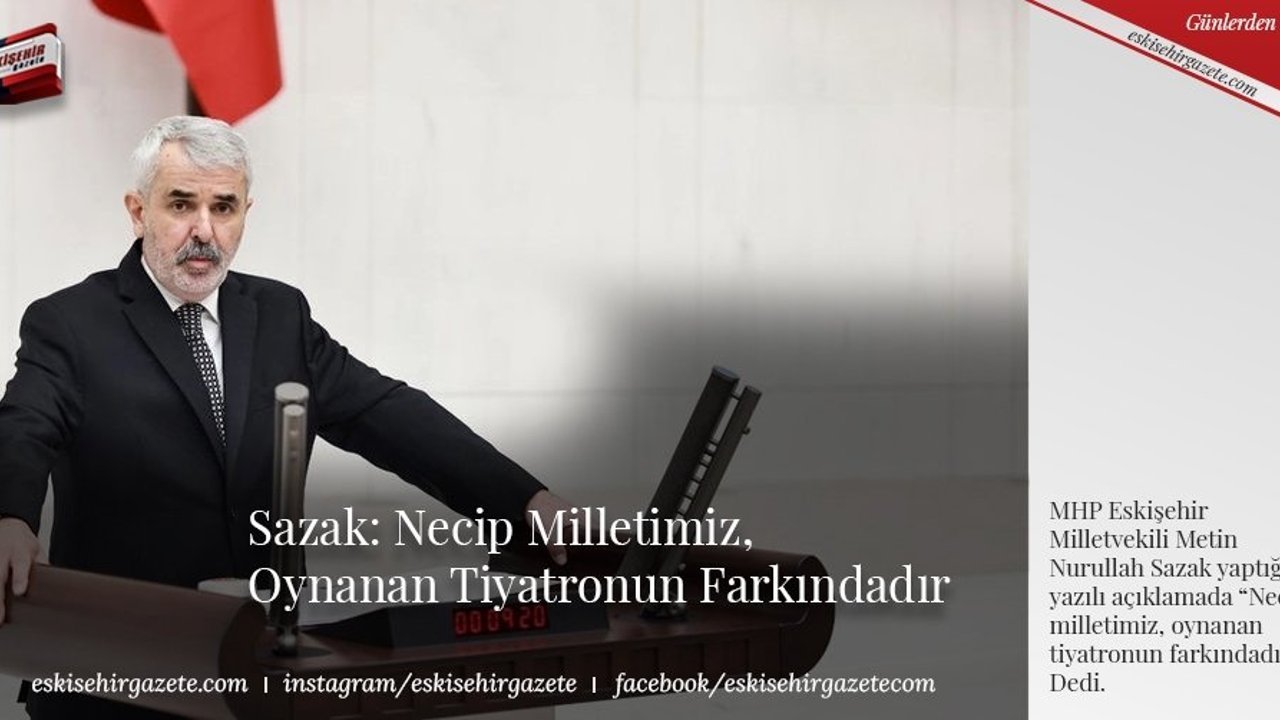 MHP Eskişehir Milletvekili Metin Nurullah Sazak yaptığı yazılı açıklamada 'Necip milletimiz, oynanan tiyatronun farkındadır' Dedi.