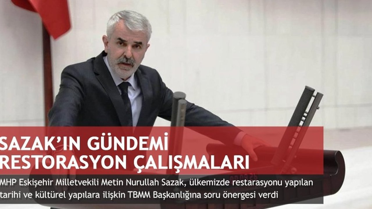 Soru önergesinde 'kültürel miras topluluklar için geçmişi geleceğe bağlayan bir köprü niteliğindedir. Kültürel miraslarda zamana, iklim ve hava koşullarına bağlı olarak meydana gelen bozulmalar, insan kaynaklı tahrip olan veya yıkılan kısımlar aslına sadık kalarak restore edilerek gelecek kuşaklara aktarılmalıdır' diyen MHP'li Sazak'ın, Kültür ve Turizm Bakanı Mehmet Nuri Ersoy'a yönelttiği sorular şu şekilde;
