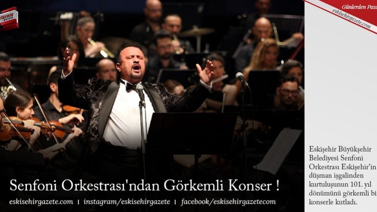 1 Eylül akşamı Atatürk Kültür Sanat ve Kongre Merkezi'nde, Eskişehir'in düşman işgalinden kurtuluşunun 101. yılı kutlandı. Musa Göçmen'in orkestra şefliğini üstlendiği konserde, konuk solistler, mezzo soprano Çiğdem Gürdal ve tenor Ömer Türkmenoğlu başarılı performanslarıyla göz kamaştırdı.