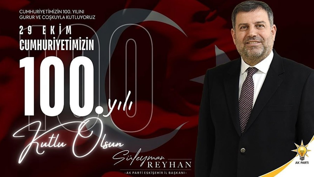 AK Parti Eskişehir İl Başkanı Süleyman Reyhan mesajında, ' Türkiye Cumhuriyetinin kuruluşunun 100. yılını gurur ve coşkuyla kutluyoruz. Bugün, her zaman olduğu gibi milletimizin birlik ve beraberliğini