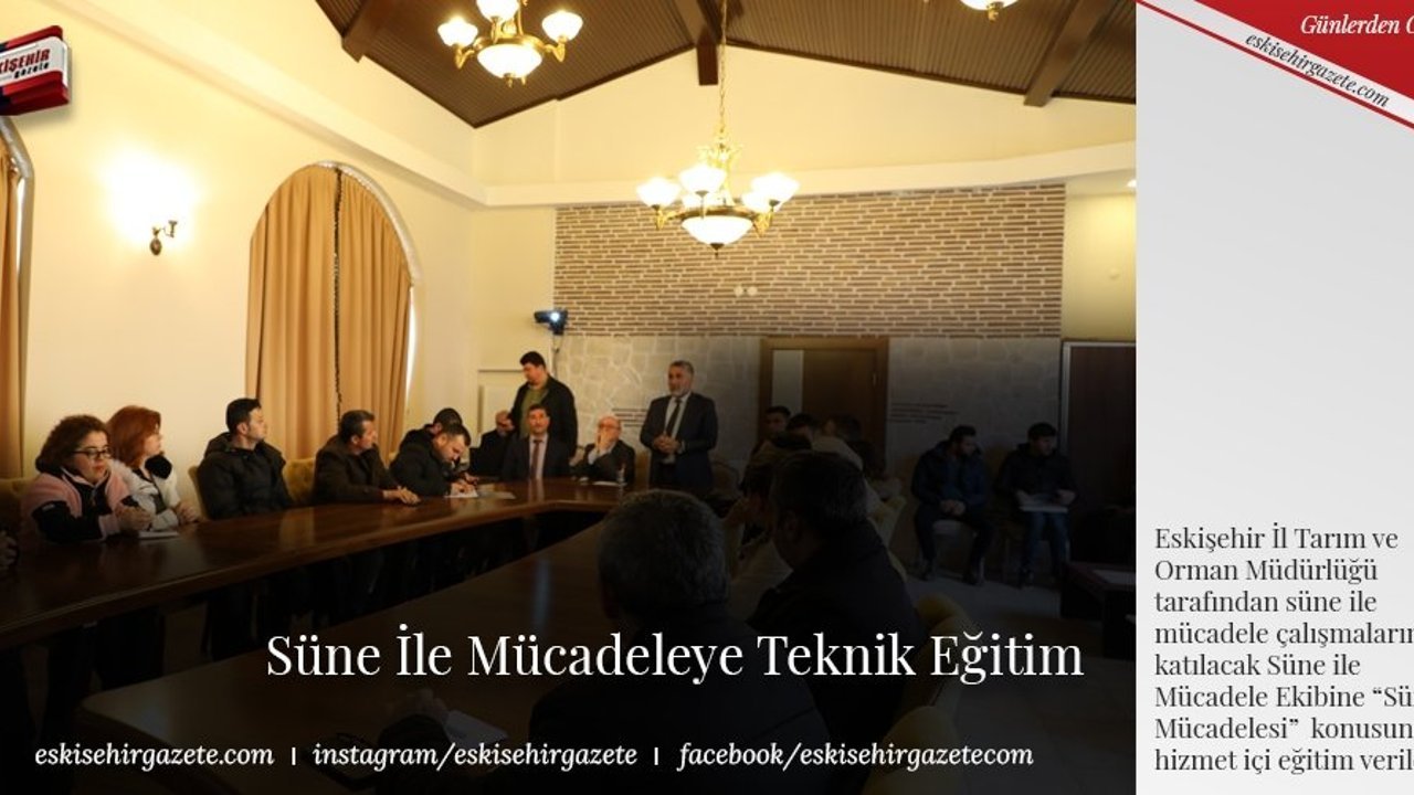 Eskişehir İl Tarım ve Orman Müdürlüğünce buğdayın en önemli zararlılarından biri olan süne ile mücadele çalışmalarına katılacak Eskişehir ve Afyonkarahisar İl Tarım ve Orman Müdürlüğü Süne ile Mücadele Ekibine 'Süne Mücadelesi' konusunda hizmet içi eğitim verildi.