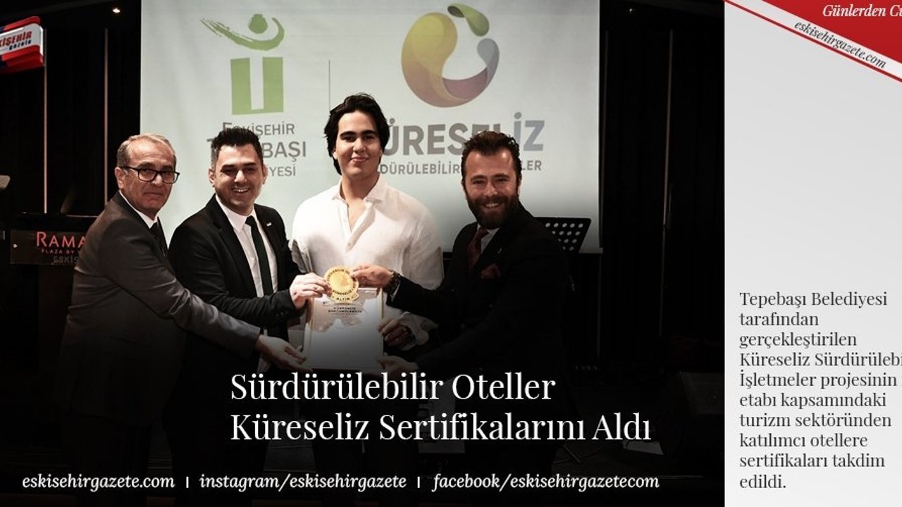 Tepebaşı Belediyesi'nin küresel amaçlar çerçevesinde başlattığı Küreseliz Sürdürülebilir İşletmeler Projesinde turizm sektöründen otellerin ele alındığı ilk etap, katılımcı otellerin sertifika töreni ile tamamlandı.