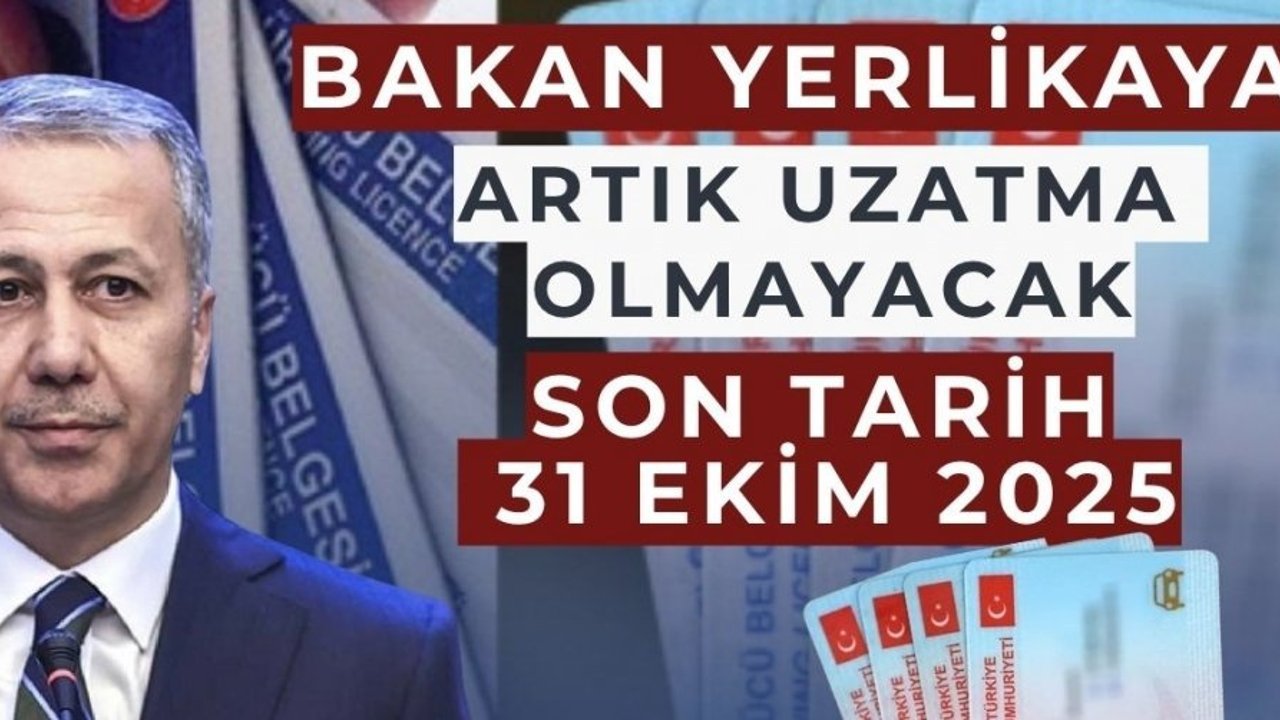 Bakan Yerlikaya paylaşımda daha önce 31 Aralık 2024 olan tarihin 31 Temmuz 2025'e çekildiğini ancak kararının ardından sadece bir gün içinde 16 bin 329 vatandaşın randevusunu iptal ettiğini belirterek; 'Günlük başvuru sayısı 55 binden 20 bine kadar geriledi. Yenileme başvurularının %70'i son 3 ayda gerçekleşti. Aylar itibarıyla başvuru sayıları şöyle: Ocak: 140.000 Şubat: 82.000 Mart: 84.000 Nisan: 101.000 Mayıs: 270.000 Haziran: 502.000 Temmuz: 1.413.489 Sadece son 2 günde (30-31 Temmuz) 236 bin başvuru alındı. Halen 2 milyon 167 bin 713 eski tip sürücü belgesi yenilenmeyi bekliyor. Bu nedenle vatandaşlarımızın mağduriyet yaşamaması için eski tip sürücü belgelerinin yenileme süresinin SON KEZ UZATILMASI kararlaştırıldı. ARTIK UZATMA OLMAYACAK Son tarih: 31 Ekim 2025 Vatandaşlarımızdan rica ediyorum. Uzatma verildiğinde başvuruların azaldığını görüyoruz. Lütfen son günlere kalmadan işlemlerimizi tamamlayalım. Randevumuzu alalım, sürücü belgemizi yenileyelim.' ifadelerini kullandı.