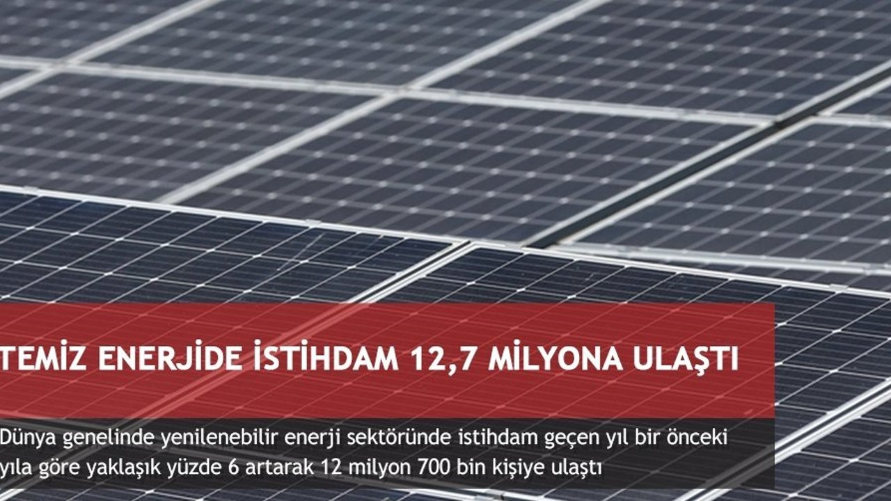 Temiz enerji alanındaki istihdam ise geçen yıl bir önceki yıla göre yaklaşık yüzde 6 artış gösterdi ve 12 milyon 700 bin kişiye ulaştı. Söz konusu artışta, ülkelerin sıfır karbon emisyonu hedefine ulaşma planları, bölgesel değişimler, sanayide yeniden yapılanma, artan talep ve rekabet, teknolojik gelişmeler ve üretim süreçlerindeki değişimler etkili oldu.