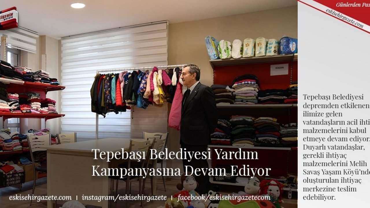 Tepebaşı Belediyesi depremden etkilenen ve ilimize gelen vatandaşların acil ihtiyaç malzemelerini kabul etmeye devam ediyor. Duyarlı vatandaşlar, gerekli ihtiyaç malzemelerini Melih Savaş Yaşam Köyü'nde oluşturulan ihtiyaç merkezine teslim edebiliyor.