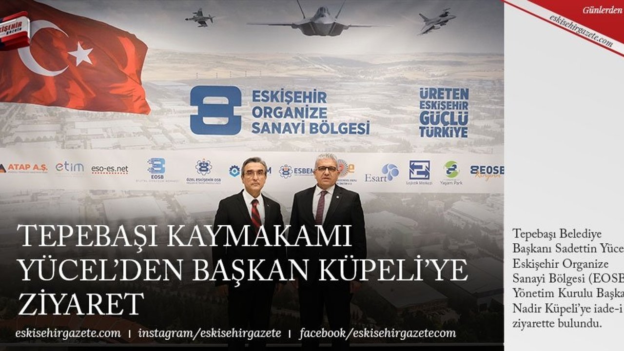 Tepebaşı Belediye Başkanı Sadettin Yücel, Eskişehir Organize Sanayi Bölgesi (EOSB) Yönetim Kurulu Başkanı Nadir Küpeli'ye iade-i ziyarette bulundu.