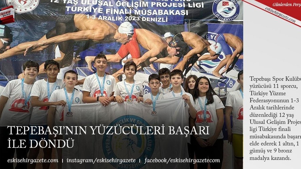 Tepebaşı Spor Kulübü yüzücüsü 11 sporcu, Türkiye Yüzme Federasyonunun 1-3 Aralık tarihlerinde düzenlediği 12 yaş Ulusal Gelişim Projesi ligi Türkiye finali müsabakasında başarı elde ederek 1 altın, 1 gümüş ve 9 bronz madalya kazandı.