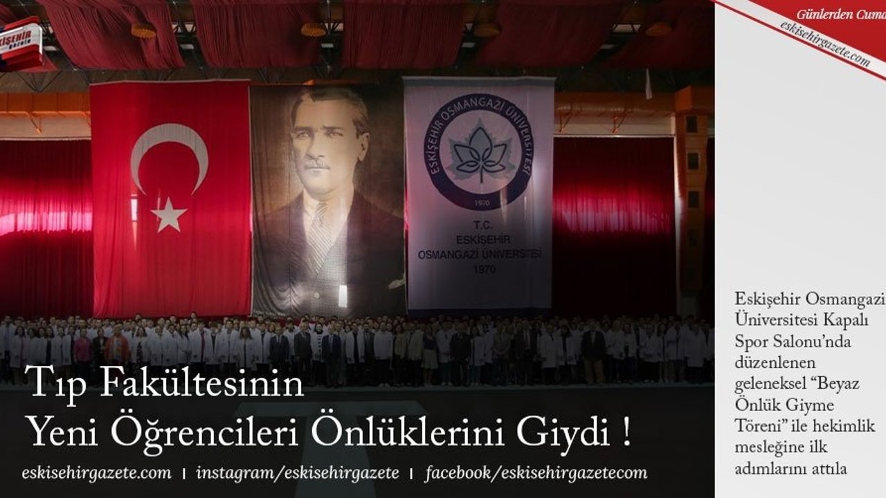 Eskişehir Osmangazi Üniversitesi Kapalı Spor Salonu'nda düzenlenen geleneksel 'Beyaz Önlük Giyme Töreni' ile hekimlik mesleğine ilk adımlarını attıla
