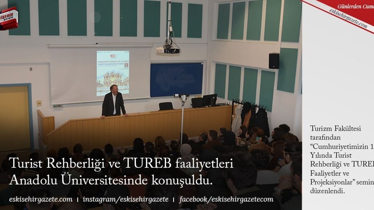 Turist Rehberleri Odaları Birliği (TUREB) Başkanı Hakan Eğinlioğlu'nun konuşmacı olduğu etkinlikte 30 yıllık meslek hayatına ve gelişen turist rehberliğine dair bilgiler paylaştı. Seminere, öğretim elemanları ve öğrenciler yoğun ilgi gösterdi.