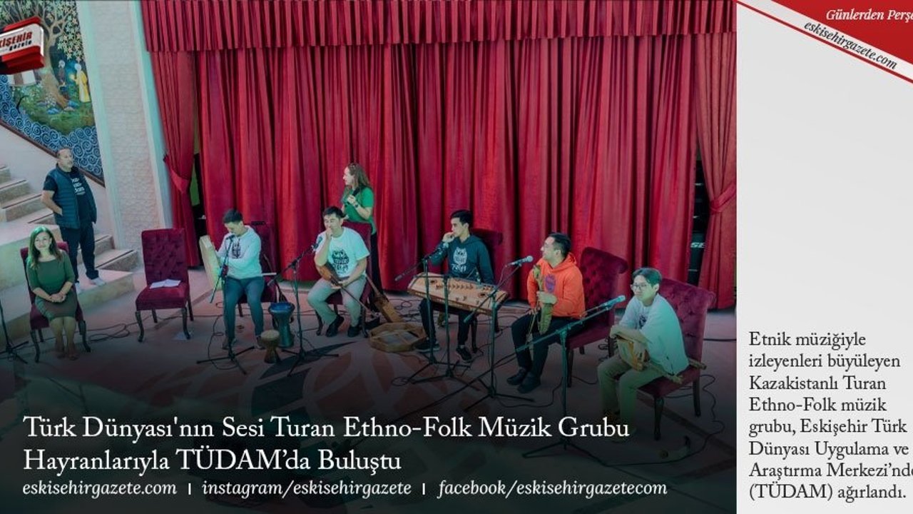 Etnik müziğiyle izleyenleri büyüleyen Kazakistanlı Turan Ethno-Folk müzik grubu, Eskişehir Türk Dünyası Uygulama ve Araştırma Merkezi'nde (TÜDAM) ağırlandı.