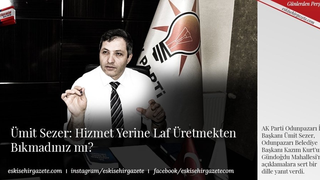 AK Parti Odunpazarı İlçe Başkanı Ümit Sezer, Odunpazarı Belediye Başkanı Kazım Kurt'un Gündoğdu Mahallesi'nde açıklamalara sert bir dille yanıt verdi.