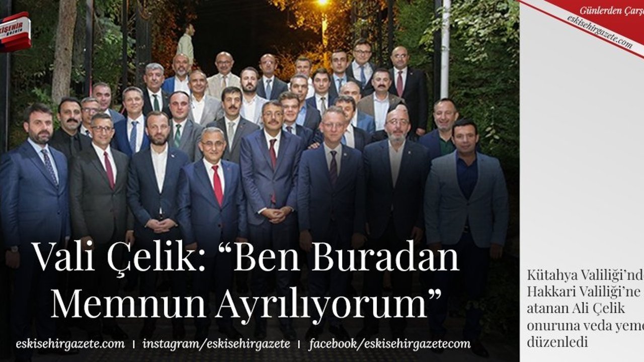 Belediye Başkanı Prof. Dr. Alim Işık, Resmi Gazete'de yayımlanan Valiler Kararnamesi ile Kütahya Valiliği'nden Hakkari Valiliği'ne atanan Ali Çelik onuruna veda yemeği düzenledi. Başkan Işık, Sayın Valimizin döneminde uyum içerisinde çalıştıklarını ve bu sayede şehrimize birçok kalıcı eserin kazandırıldığını belirterek Kütahya'ya hizmetleri için Vali Çelik'e teşekkürlerini iletti.