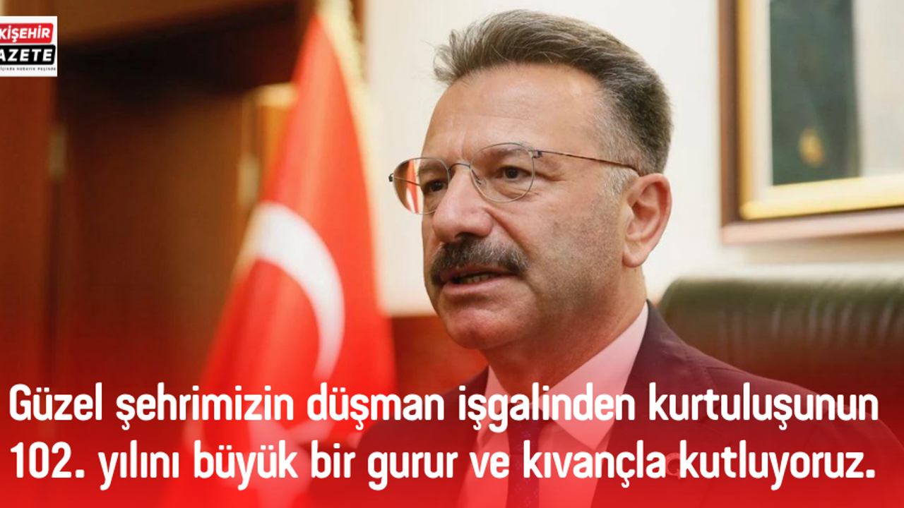 Güzel şehrimizin düşman işgalinden kurtuluşunun 102. yıl dönümünü onurla kutluyor, vatanımız için canlarını feda eden aziz şehitlerimizi rahmetle yad ediyorum. Cumhuriyetimizin kurucusu Gazi Mustafa Kemal başta olmak üzere, şehrimizin ve ülkemizin kurtuluş mücadelesi ve bölünmez bütünlüğü uğruna bu güne kadar kaybettiğimiz tüm gazilerimizi rahmetle ve minnetle anıyorum. 102 yıl önce elde edilen bu zaferi aynı heyecanla kutlayan tüm Eskişehirlilere sevgi ve saygılarımı sunuyorum.
