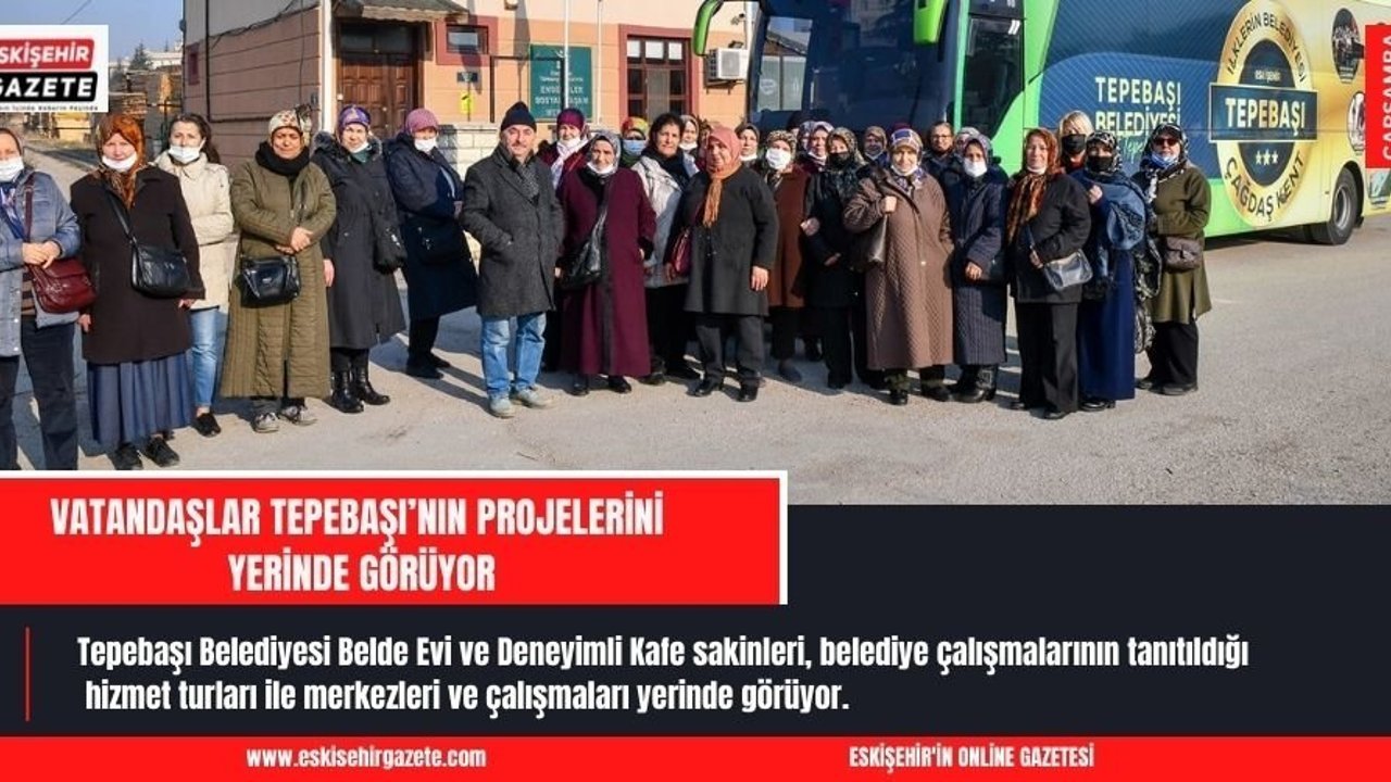 Tepebaşı Belediyesi Belde Evi ve Deneyimli Kafe sakinleri, belediye çalışmalarının tanıtıldığı hizmet turları ile merkezleri ve çalışmaları yerinde görüyor.